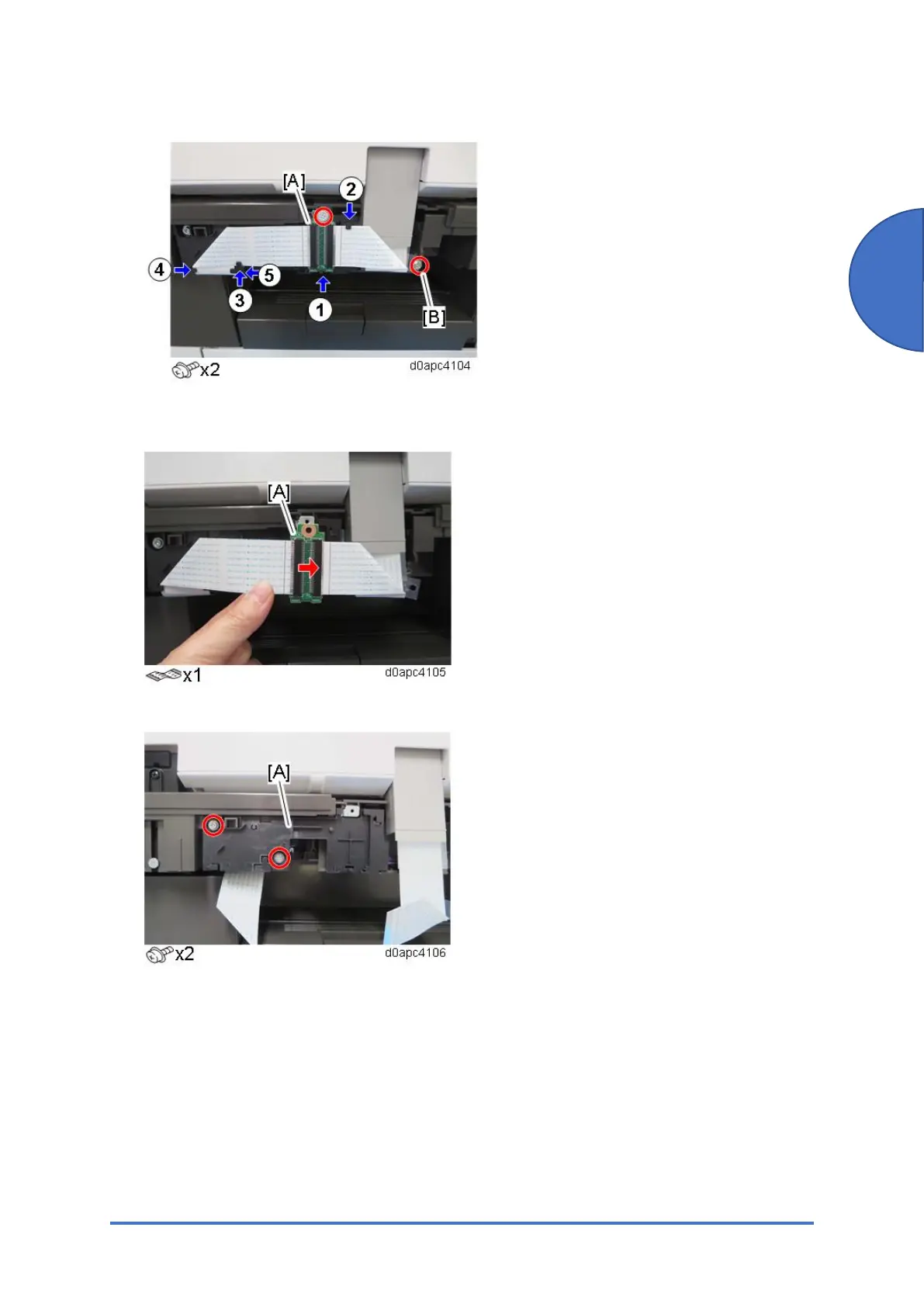 5. Disconnect the right FFC from the relay board [A] while pulling it out straight. (There is no