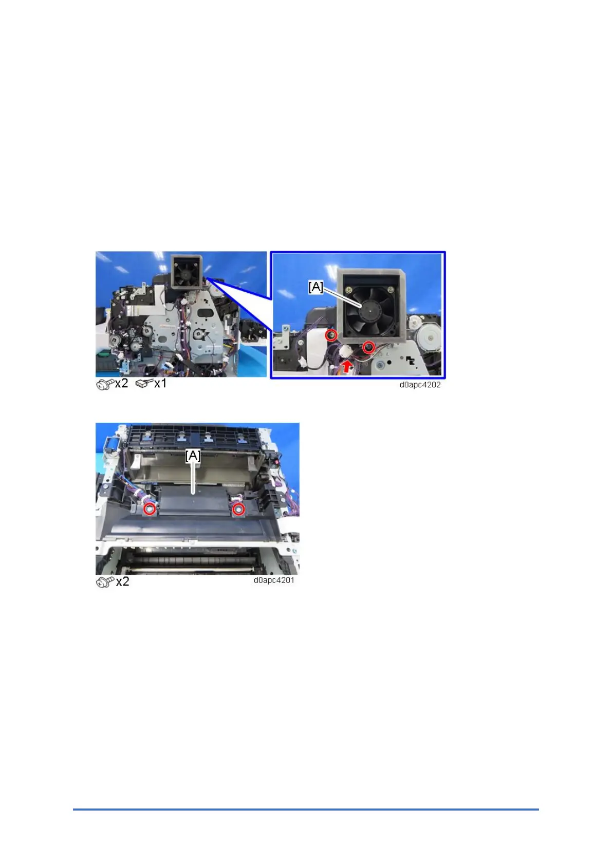 4. MF model: Remove the PCDU cooling fan (right) (FAN1) (right) with duct [A].