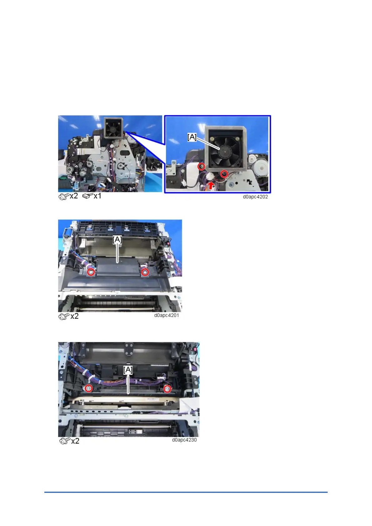 4. MF model: Remove the PCDU cooling fan (right) (FAN1) with duct [A].