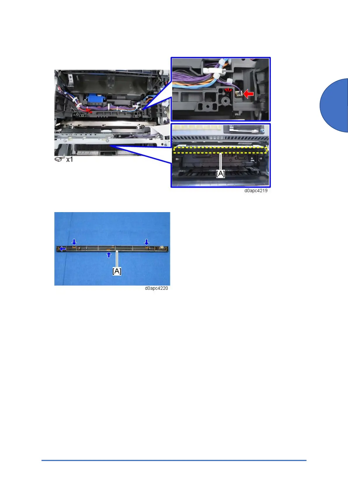 8. Release the four hooks to remove the quenching lamp from the case [A].