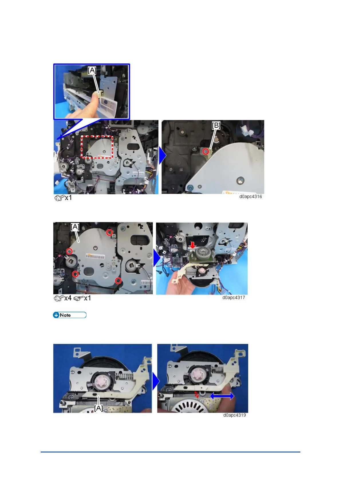 5. Remove the drum motor (M3) unit [A].