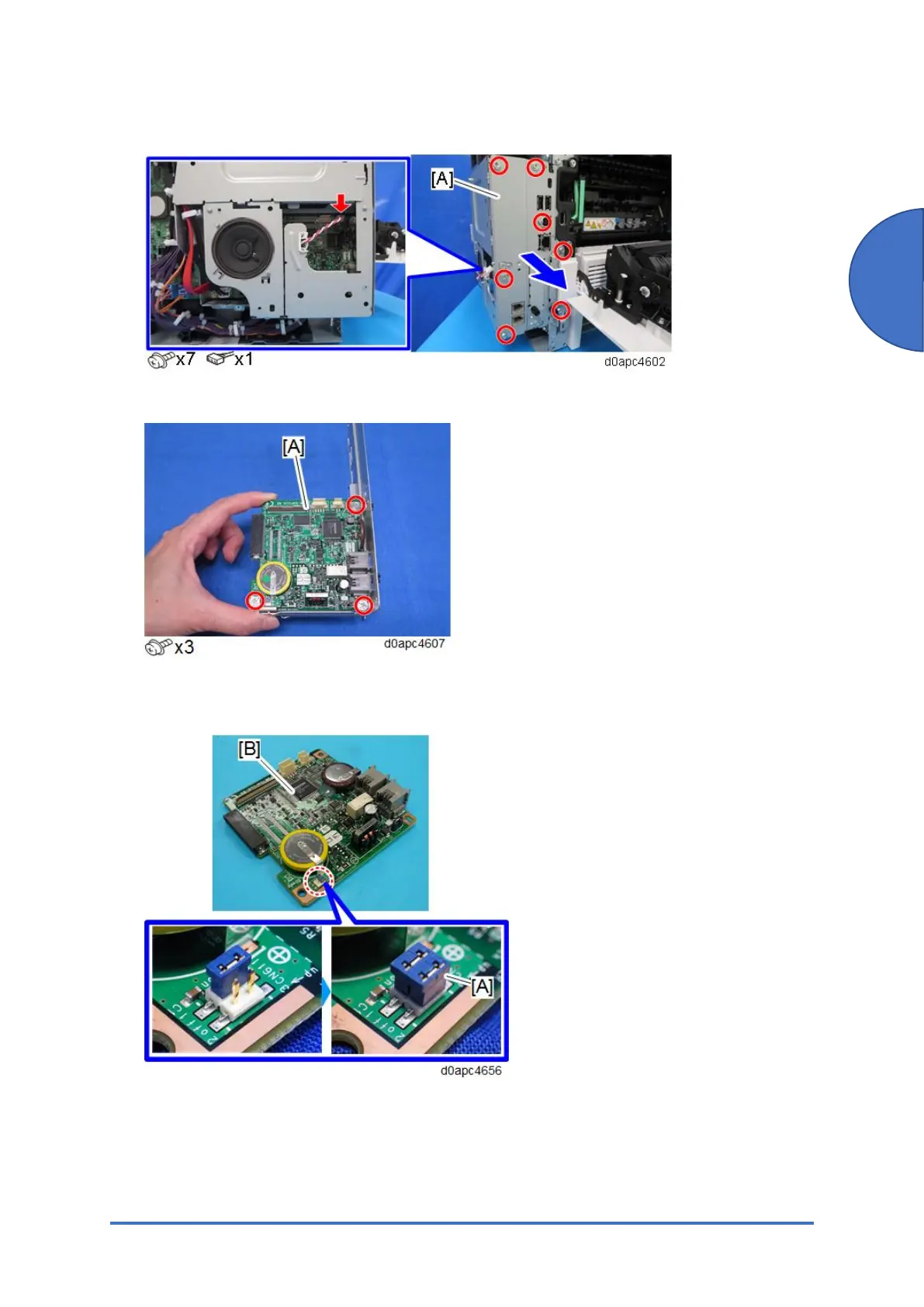 5. Attach the jumper [A] on the removed FCU board [B]. The jumper comes with the new FCU