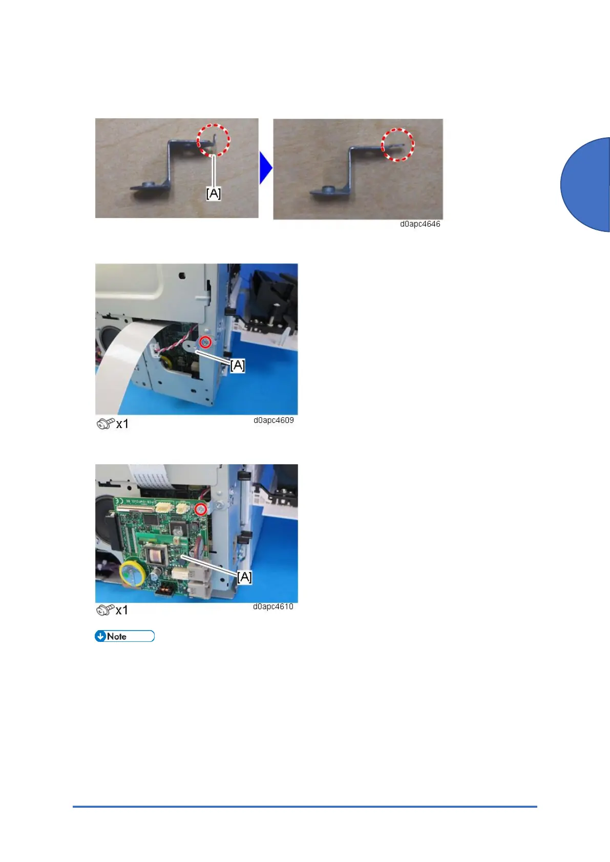 12. Attach the old FCU board [A] to the bracket temporarily.