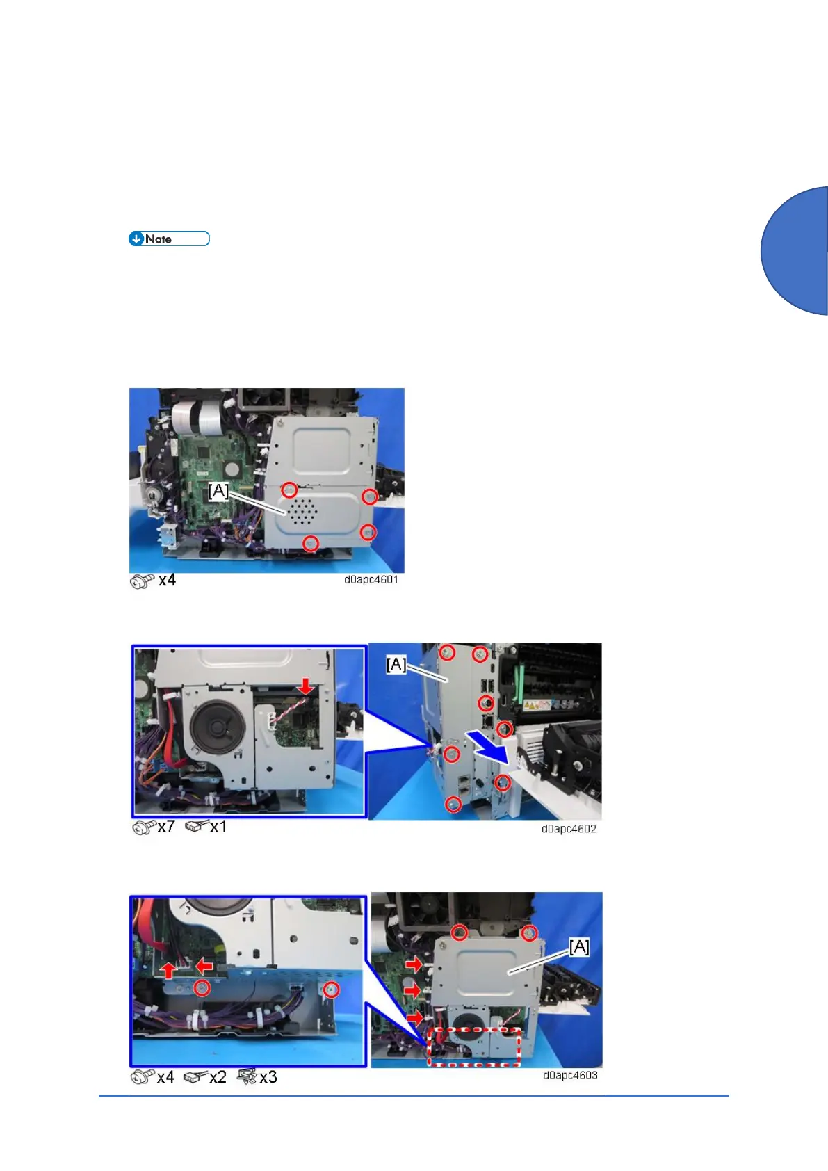 3. Disconnect the harness, and then pull out the interface cover [A] to remove it.