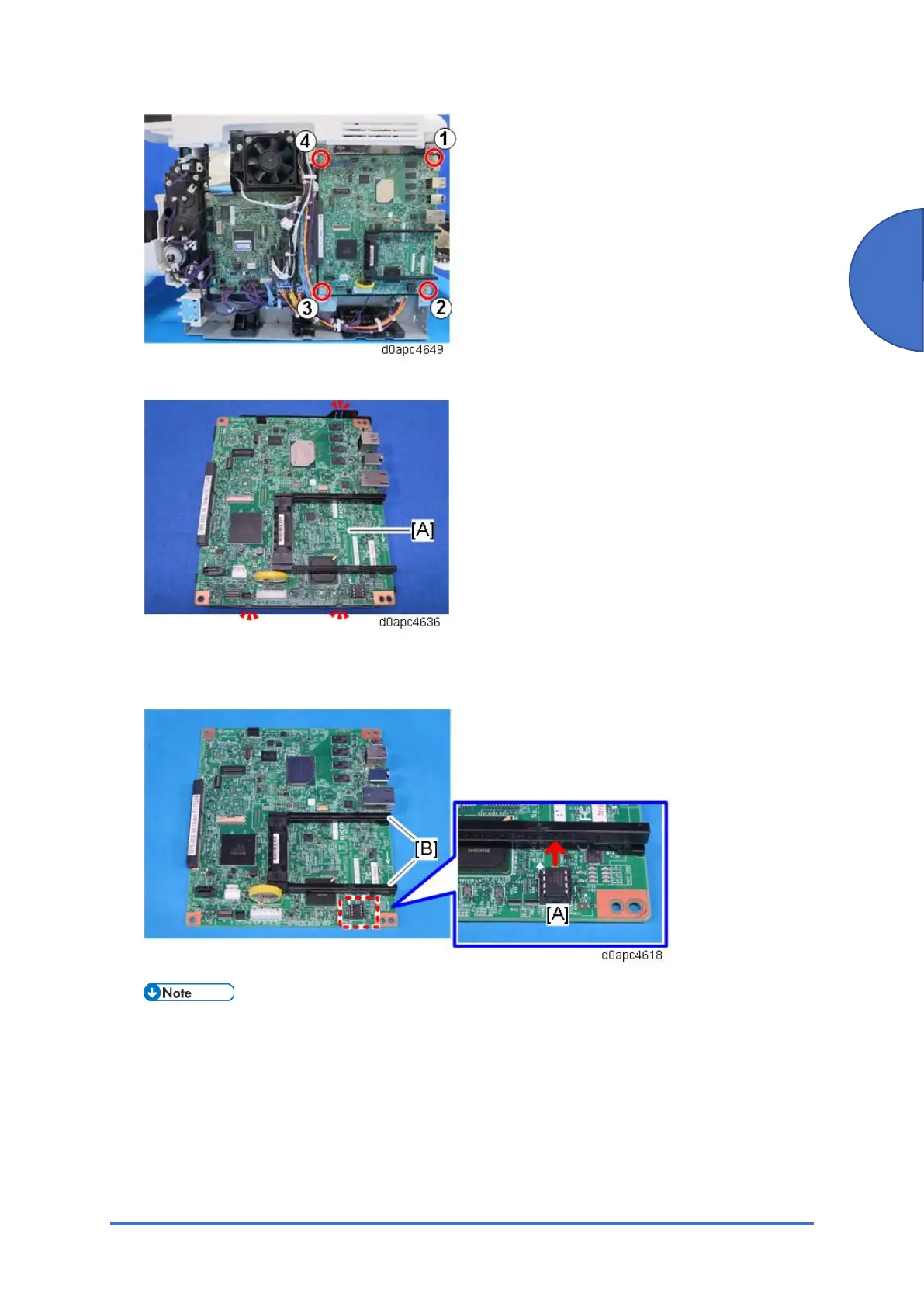 4. Release the three hooks, and then remove the controller board [A].