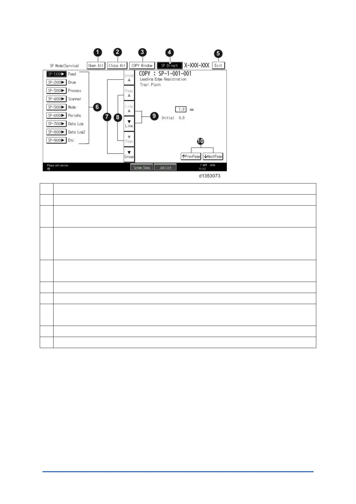 3 Opens the copy window (copy mode) so you can make test copies. Press SP Mode
