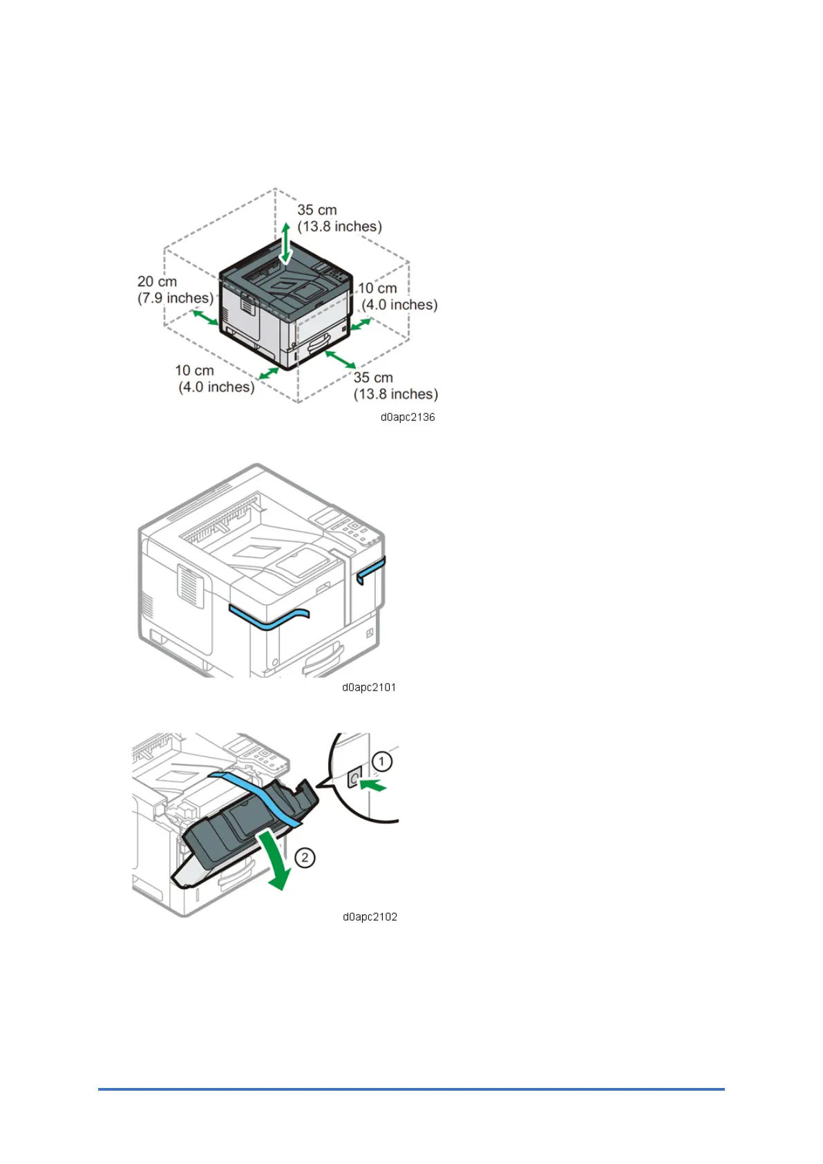 1. Do not put anything in the space around the machine, so that you can load paper, replace
