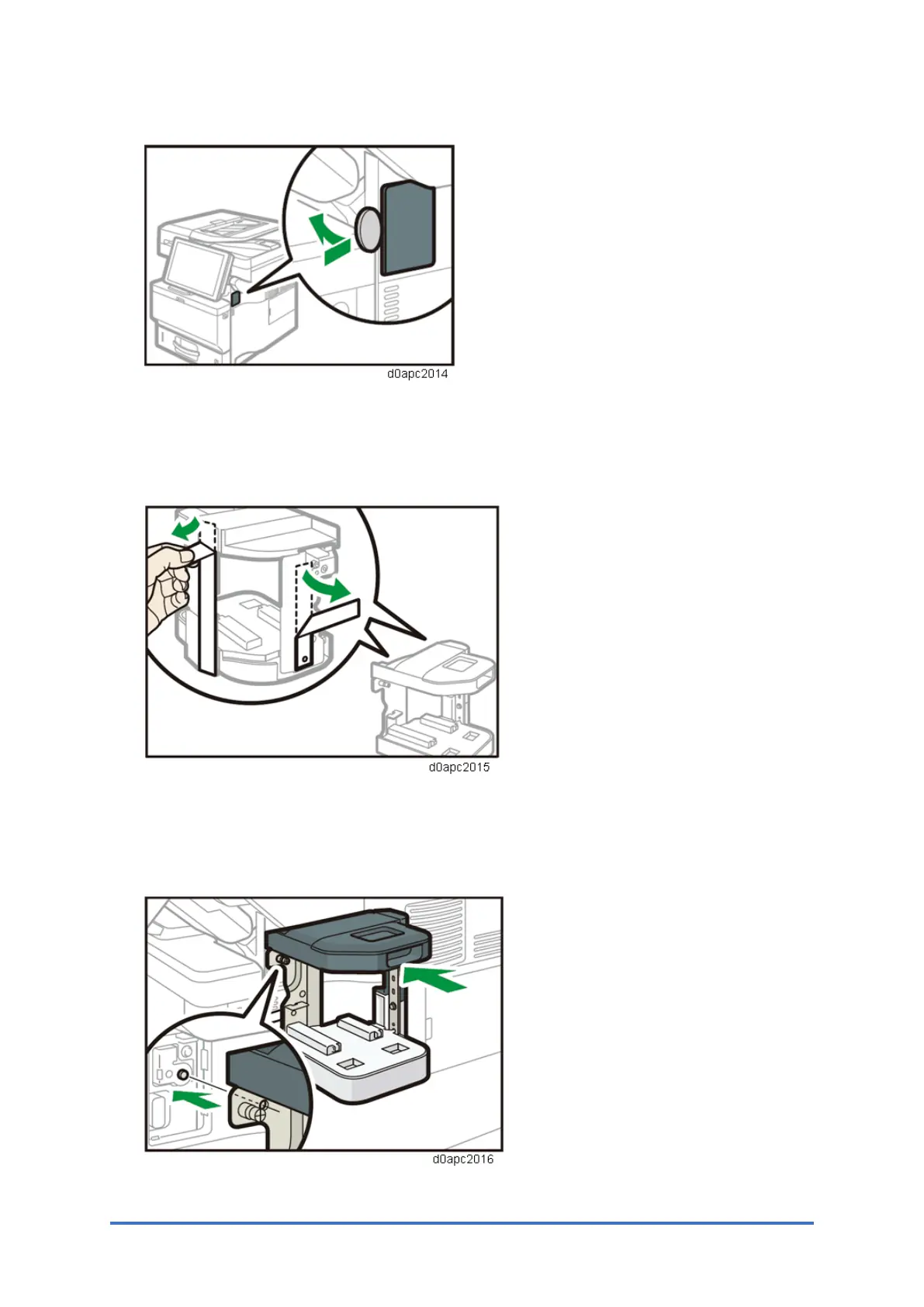 4. Align the lines of both the machine and the staple unit cradle as shown in the illustration,