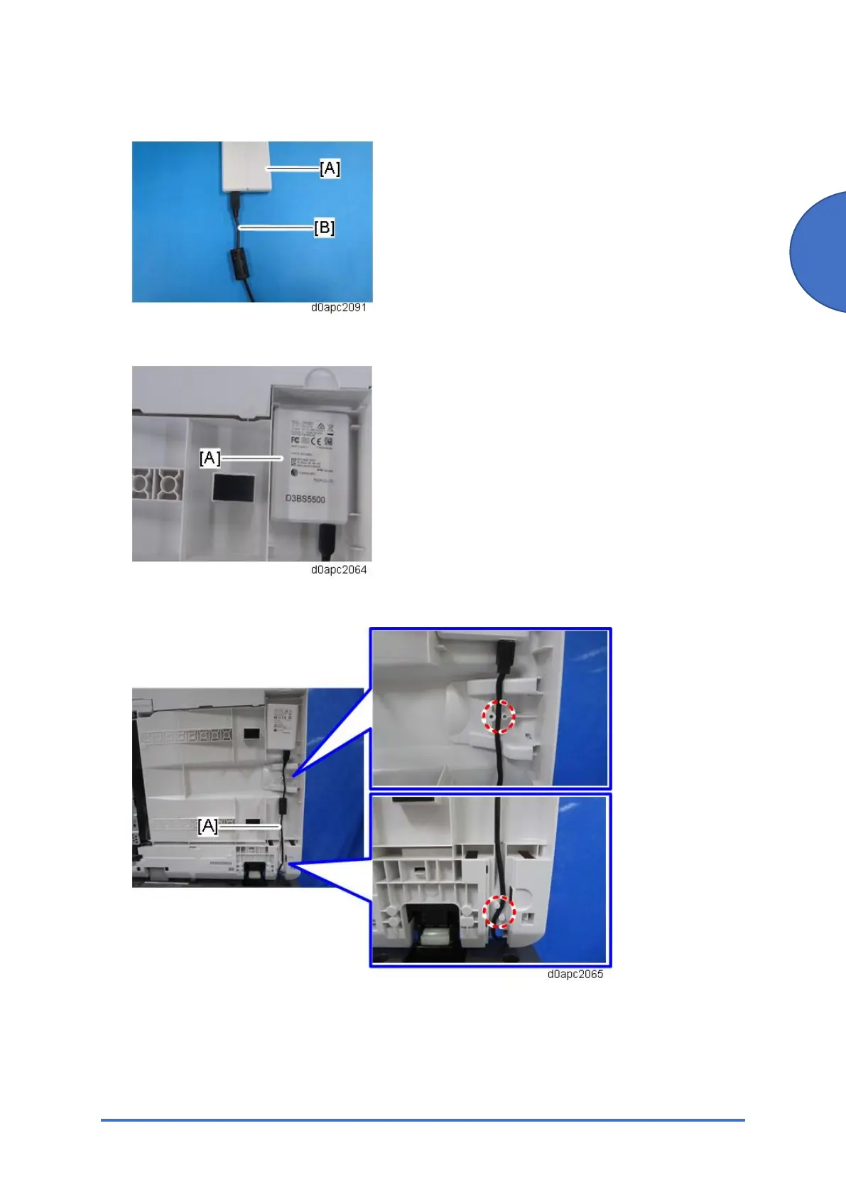 9. Connect the USB cable [B] with the ferrite core to the NFC card reader [A].