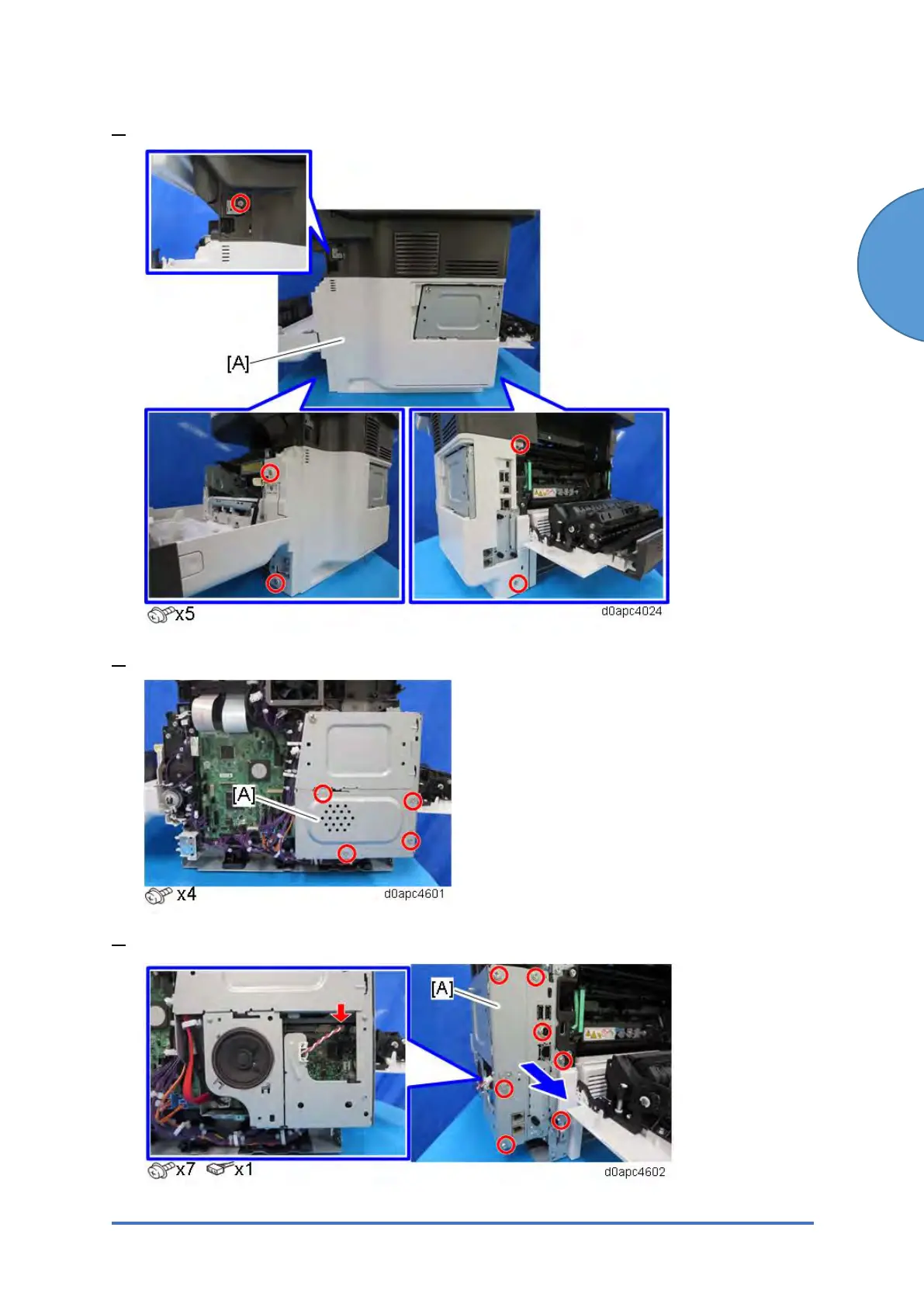 7. Disconnect the harness, and then pull out the interface cover [A] to remove it.