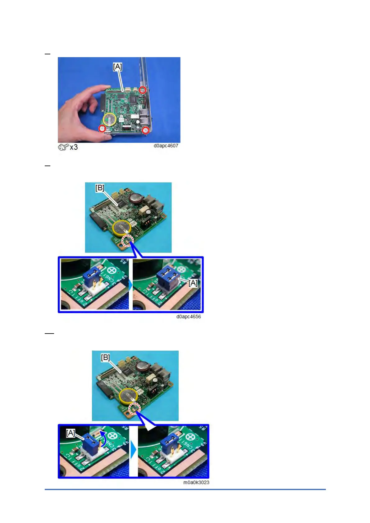 9. Attach the jumper [A] on the removed FCU board [B]. The jumper comes with the new FCU