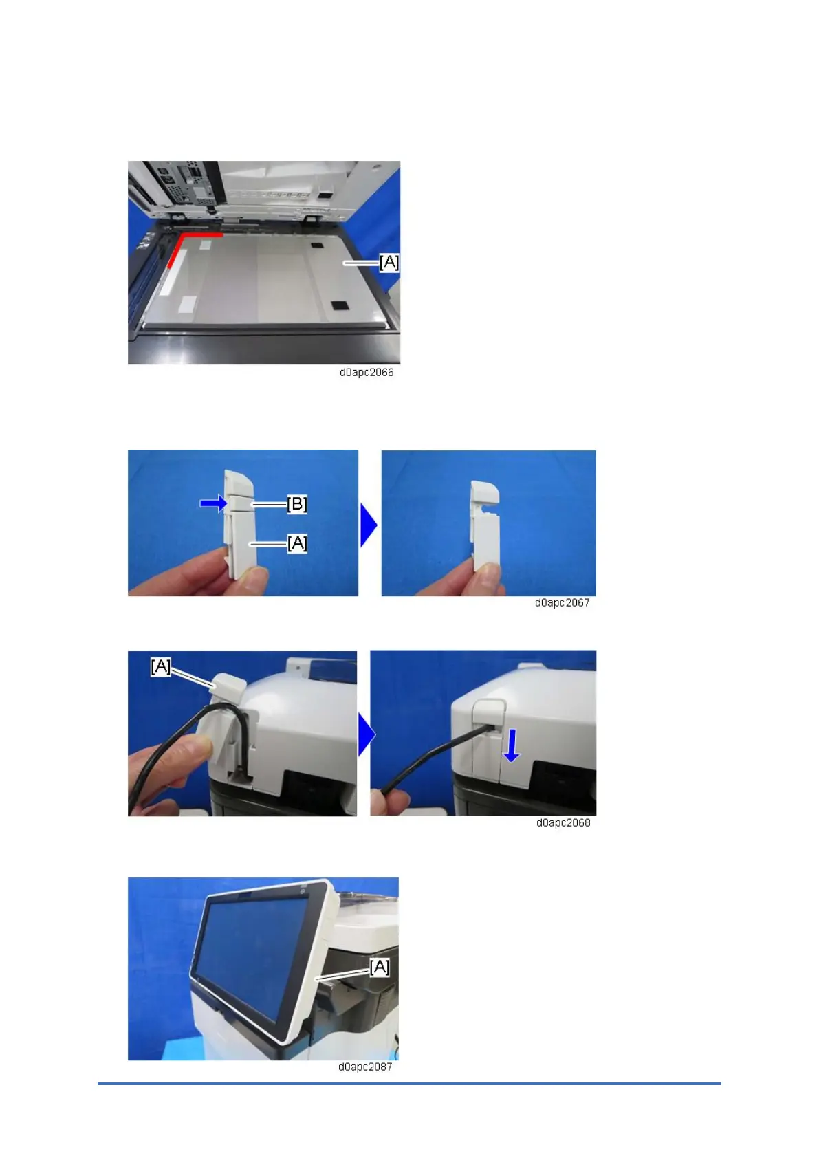17. Pass the USB cable through the hole, and then attach the small cover [A].