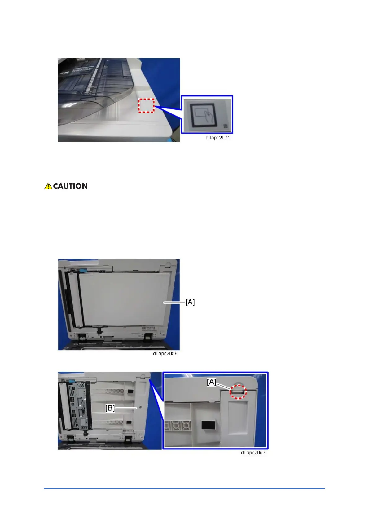 2. Remove the platen sheet [A]. Do not place the removed platen sheet on the exposure