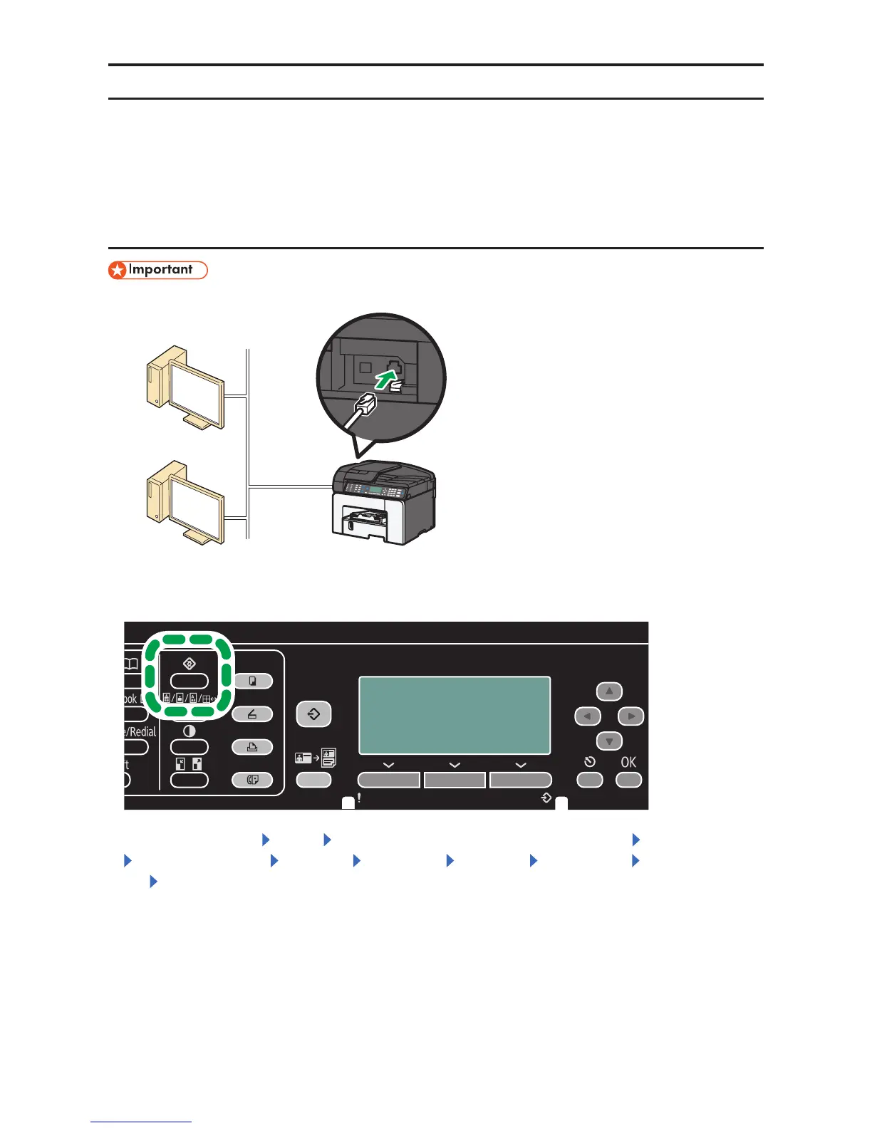 [Interface Settings] [Network] [LAN Type] [Ethernet] the [OK] key Turn the machine