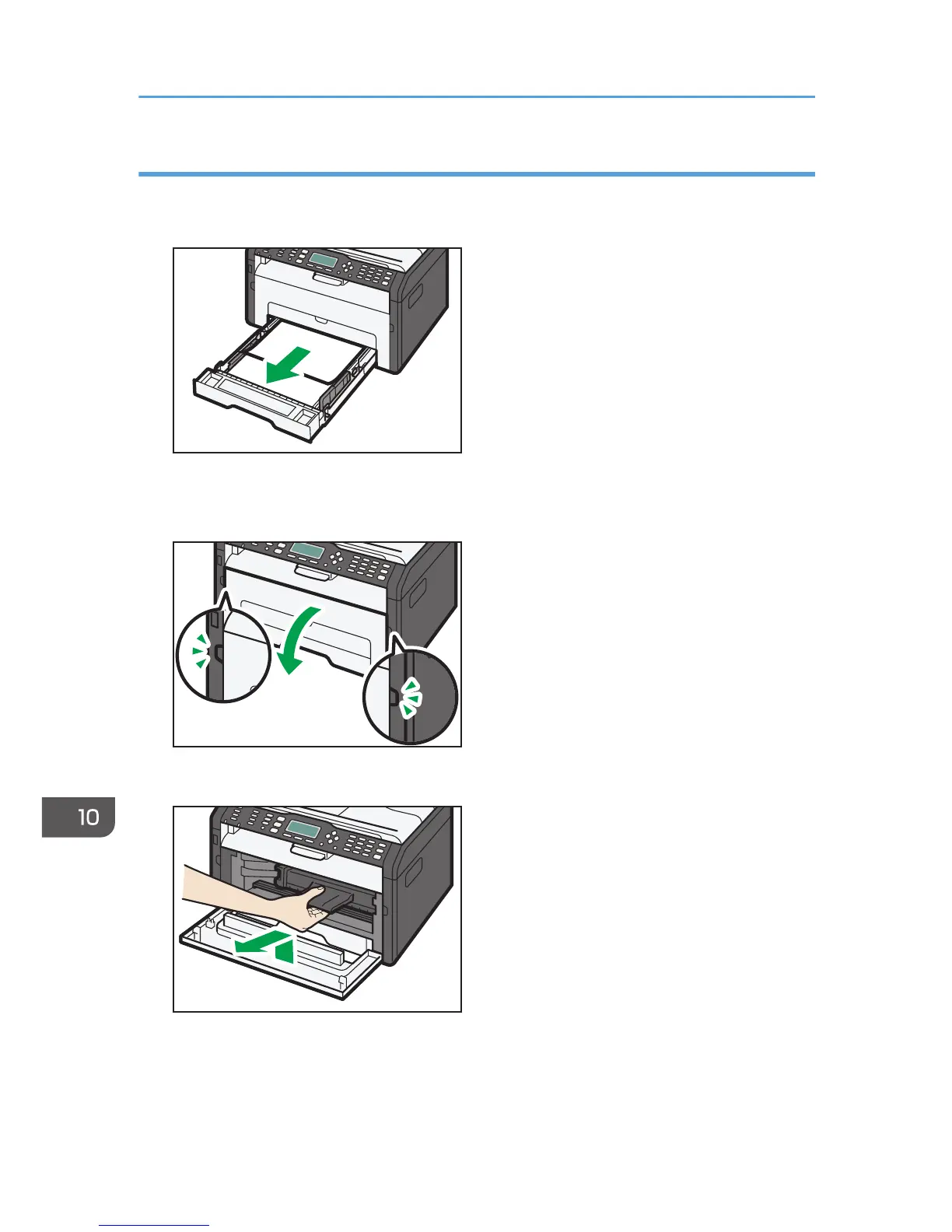 1. Pull Tray 1 halfway out, and check for jammed paper. If there is jammed paper, remove it