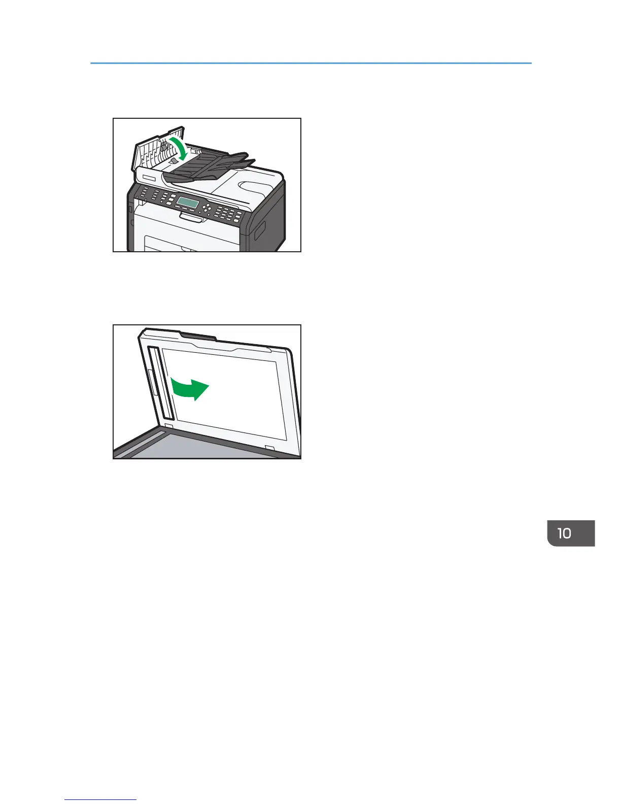 4. Lift the ADF, and if there is original remaining in the ADF, gently pull the jammed original