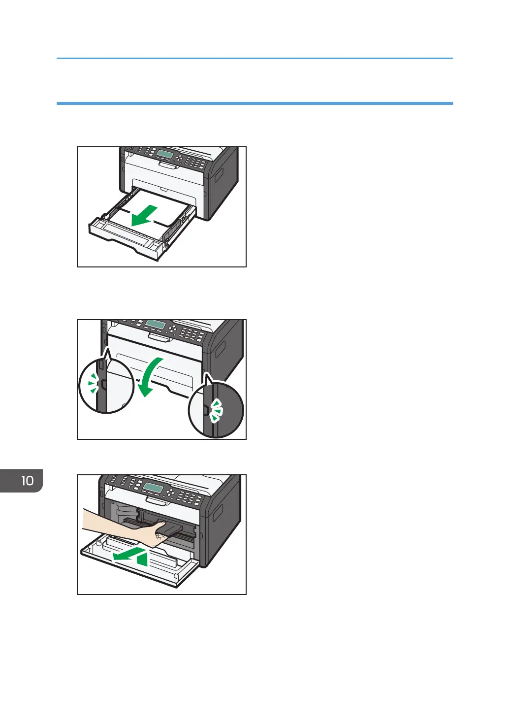1. Pull Tray 1 halfway out, and check for jammed paper. If there is jammed paper, remove it