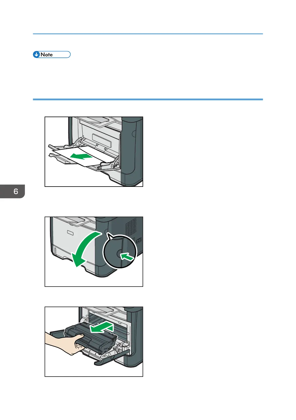 1. If paper is jammed in the bypass tray input area, remove the jammed paper carefully.