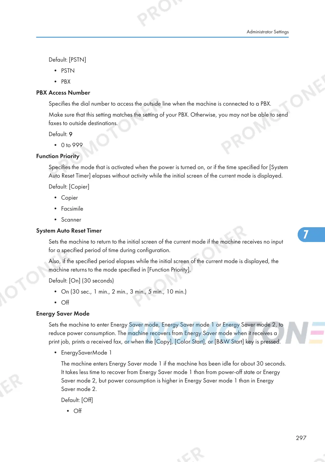 The machine enters Energy Saver mode 1 if the machine has been idle for about 30 seconds.