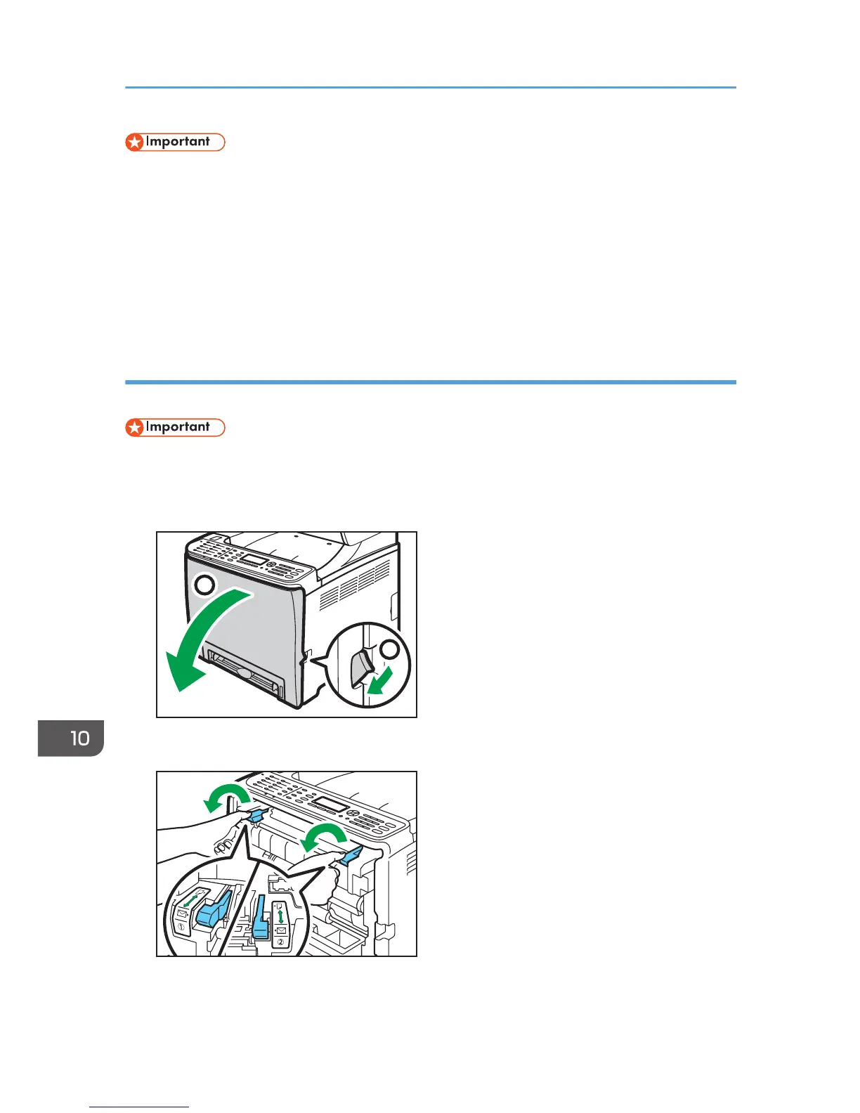 1. Pull the front cover open lever and then carefully lower the front cover.