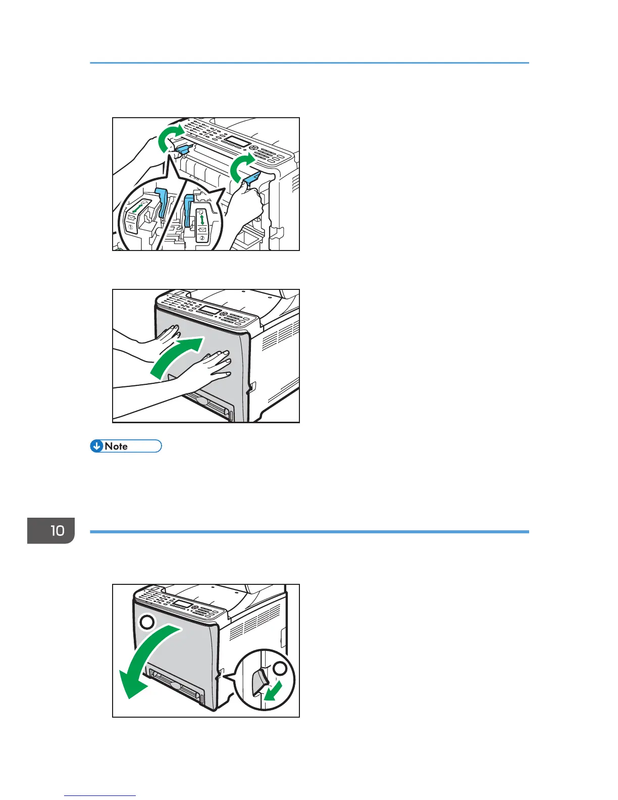 • When closing the front cover, push the upper area of the cover firmly. After closing the cover,