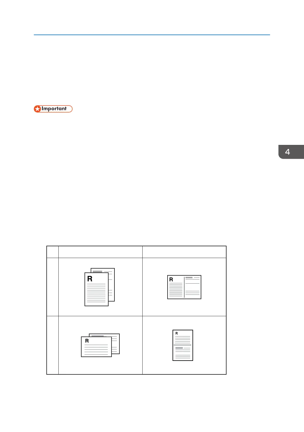 In this mode, a two or four-page original is combined and printed on one side of paper.