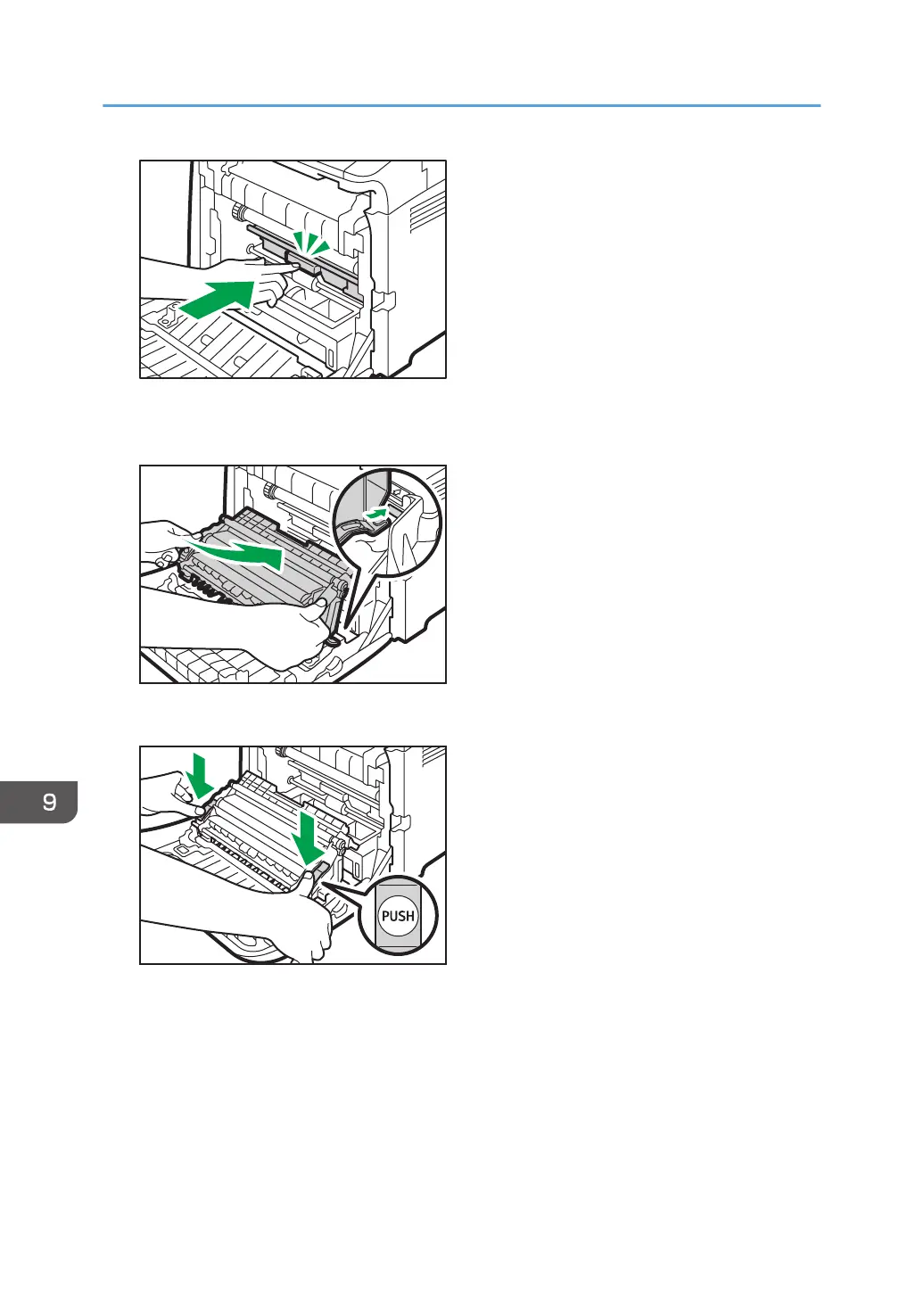 9. Place the transfer unit on the front cover. Slide the transfer unit along the guide rails into
