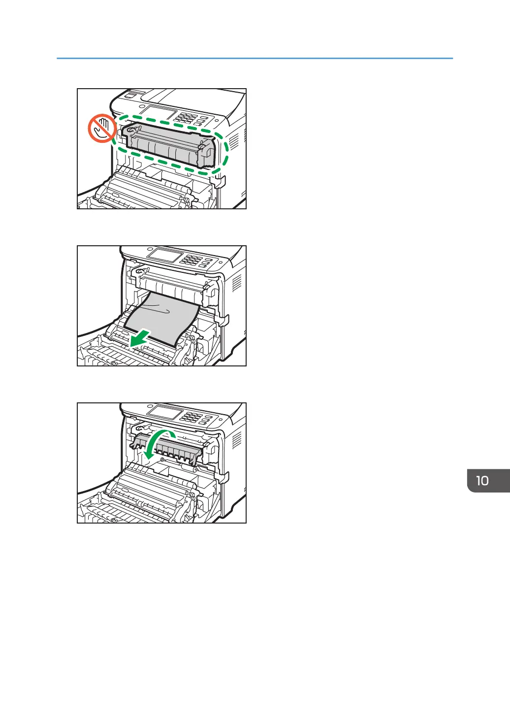 Pull the paper downward to remove it. Do not pull it upward.