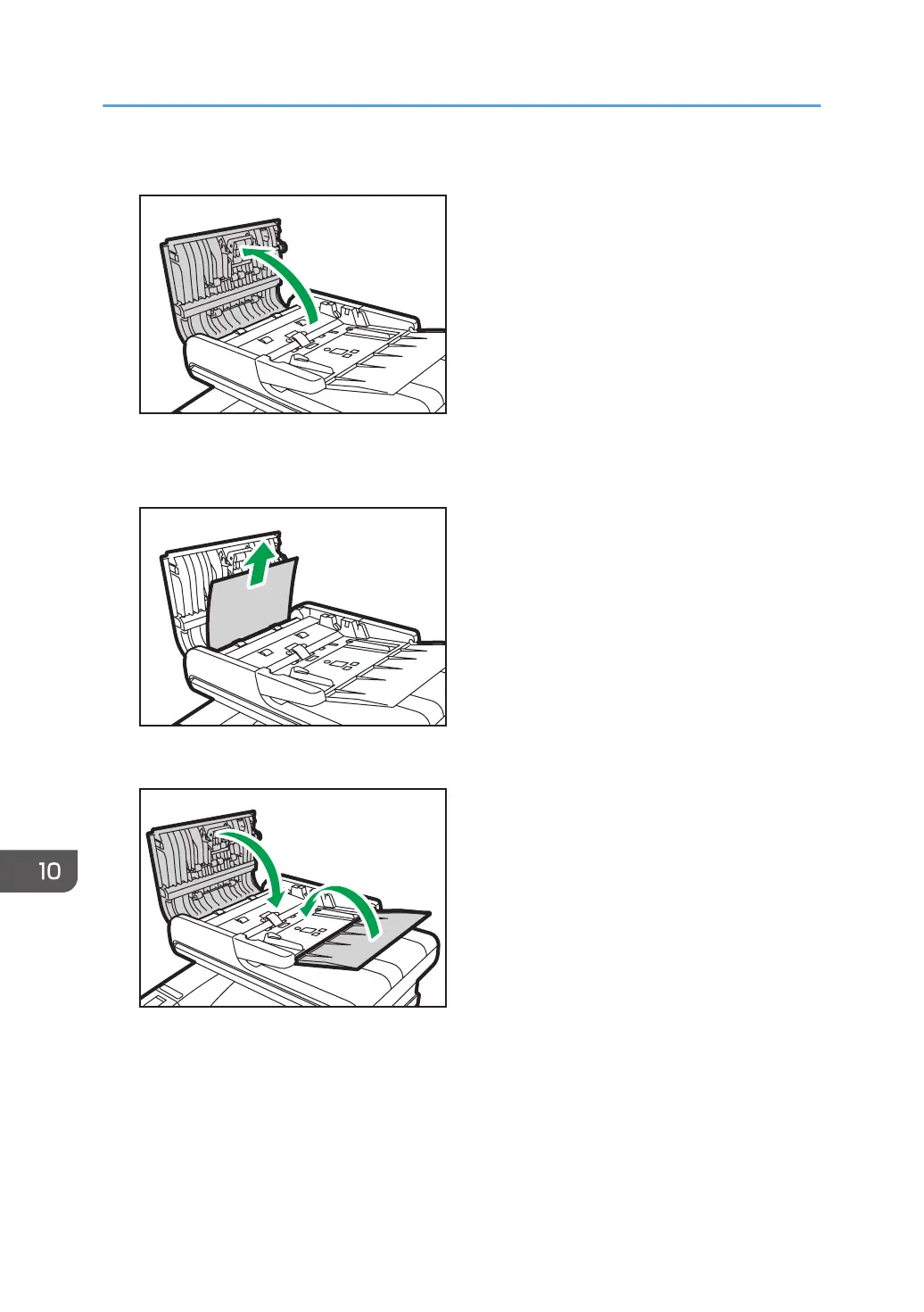 4. Lift the ADF, and if there is any original remaining in the ADF, gently pull the jammed