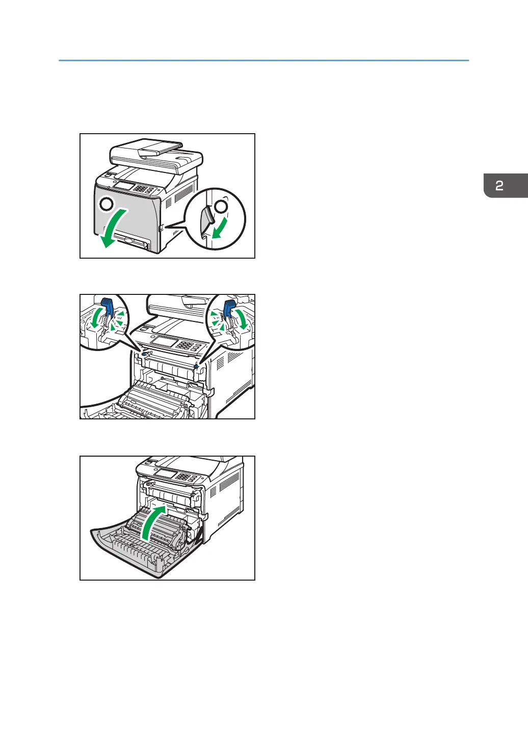 1. Pull the front cover open lever, and then carefully lower the front cover.
