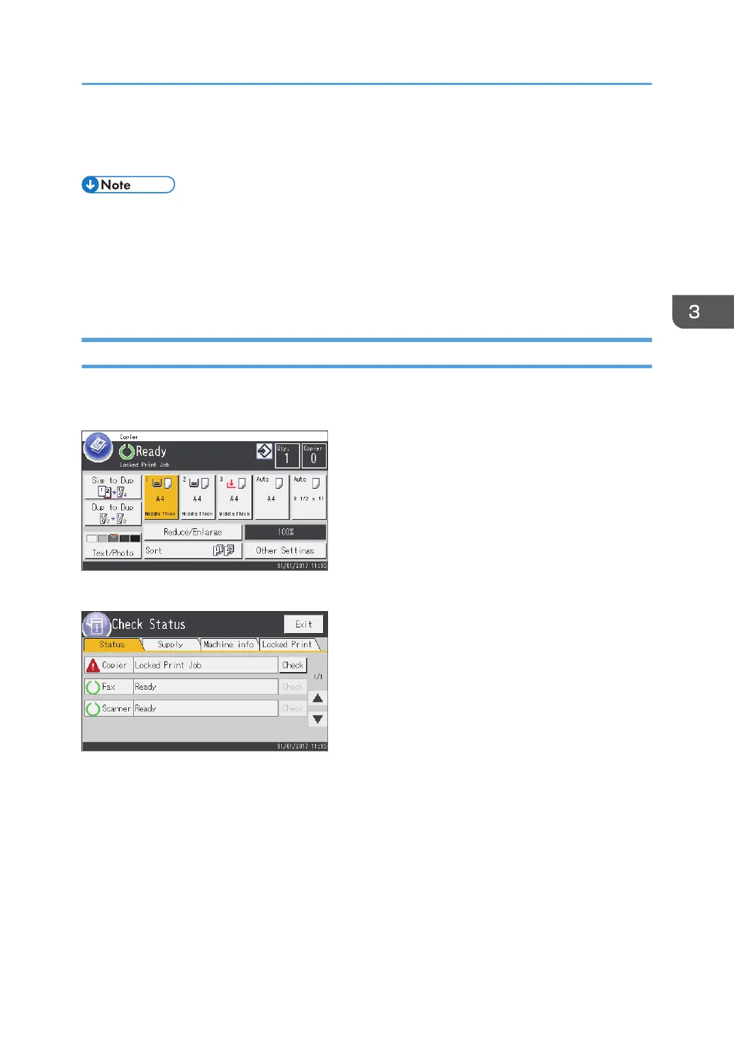 When there is a Locked Print file stored in the machine, “Locked Print Job” appears on the machine's