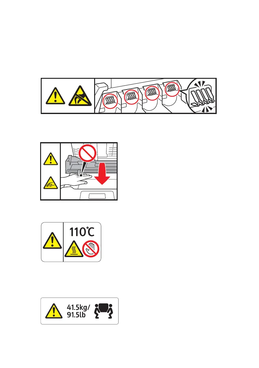 toque las partes identificadas con la etiqueta “hot surface” (superficie caliente).