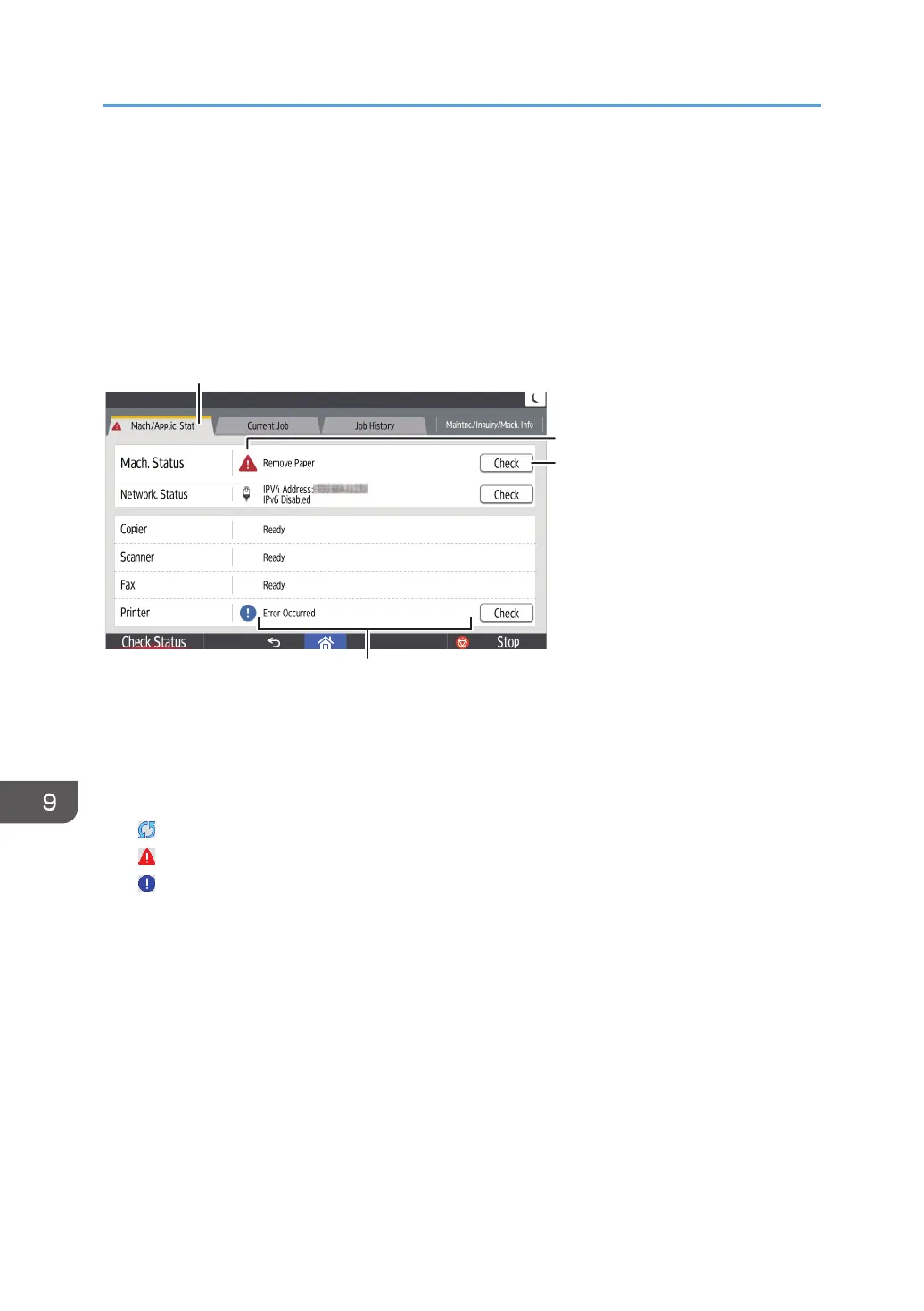 If the indicator lamp for [Check Status] lights up or flashes, press [Check Status] to display the [Check