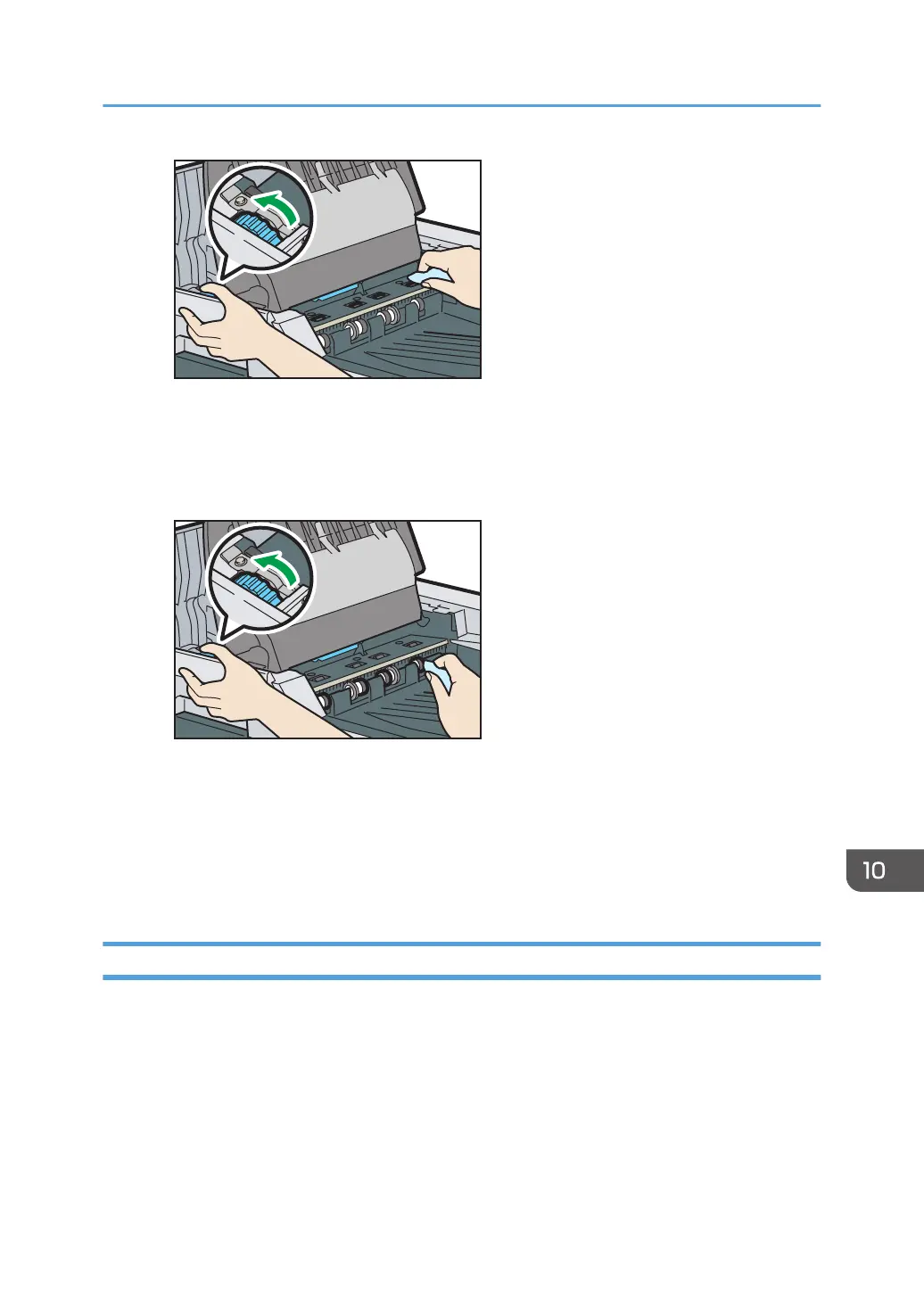 the output roller. Wipe around each of four rollers while rotating them, and then wipe the