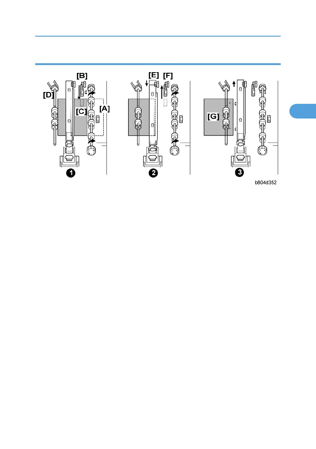 The paper position slide unit [B] moves the paper position sensor [C] forward to the edge of the paper.