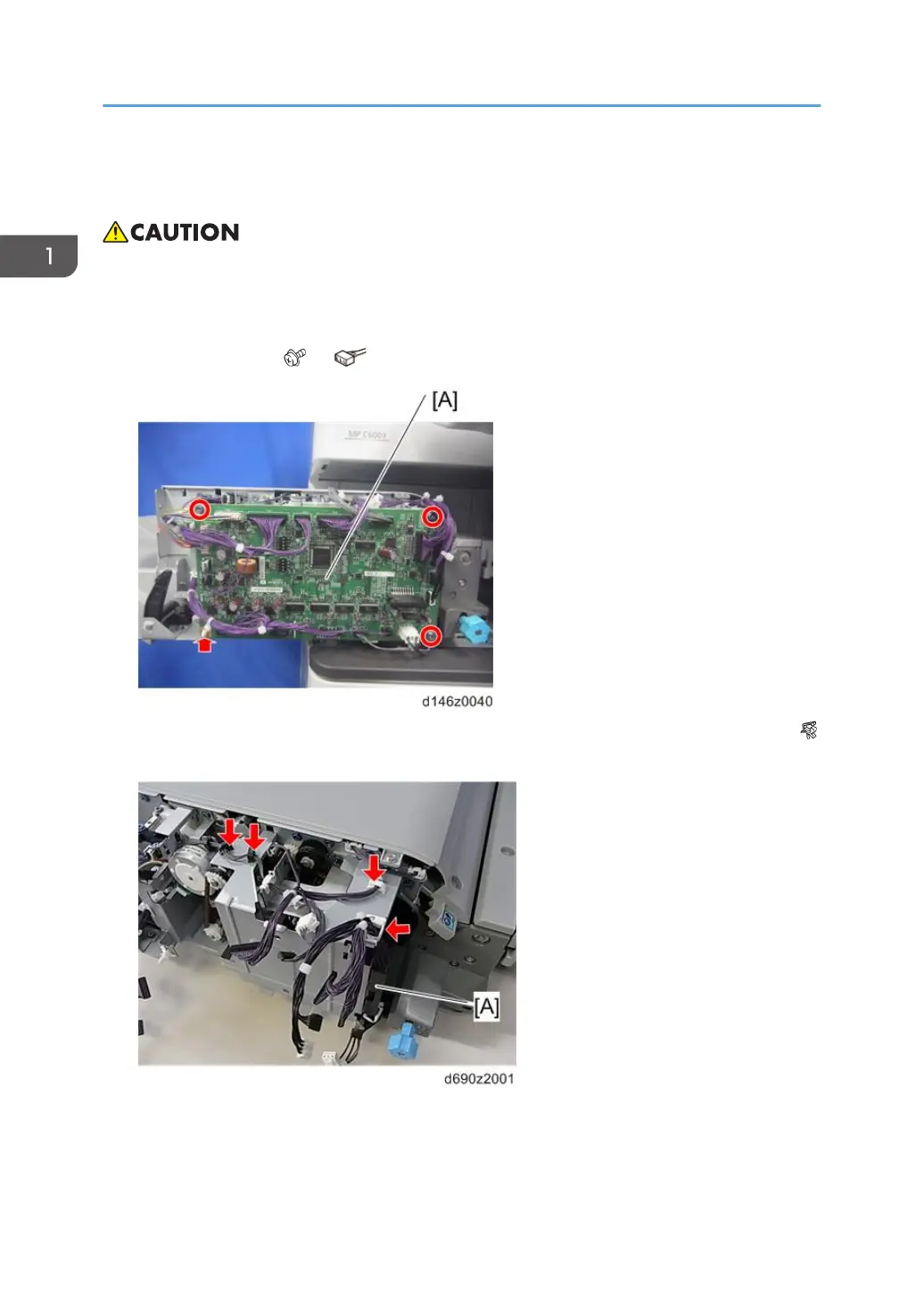 3. Release four clamps and remove the harness bracket [A] on the control board bracket (