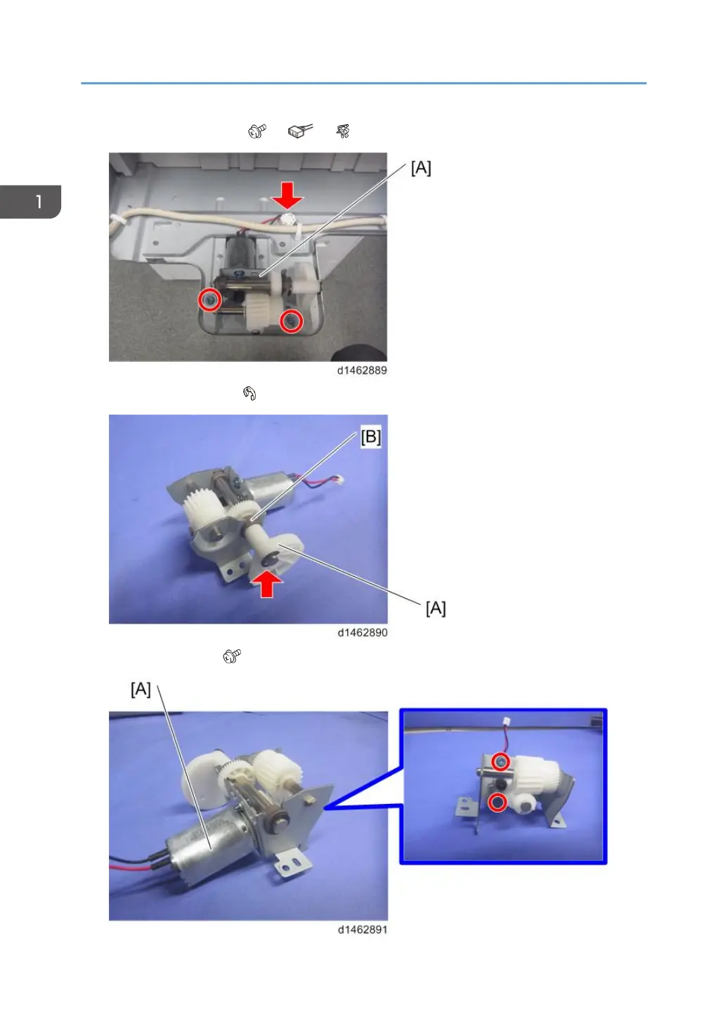 2. Tray lift motor unit [A] ( ×2, ×1, ×1).