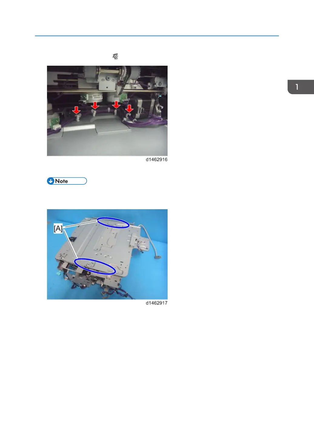 Hold the parts [A] shown below to lift the inner finisher. Otherwise, other brackets and parts