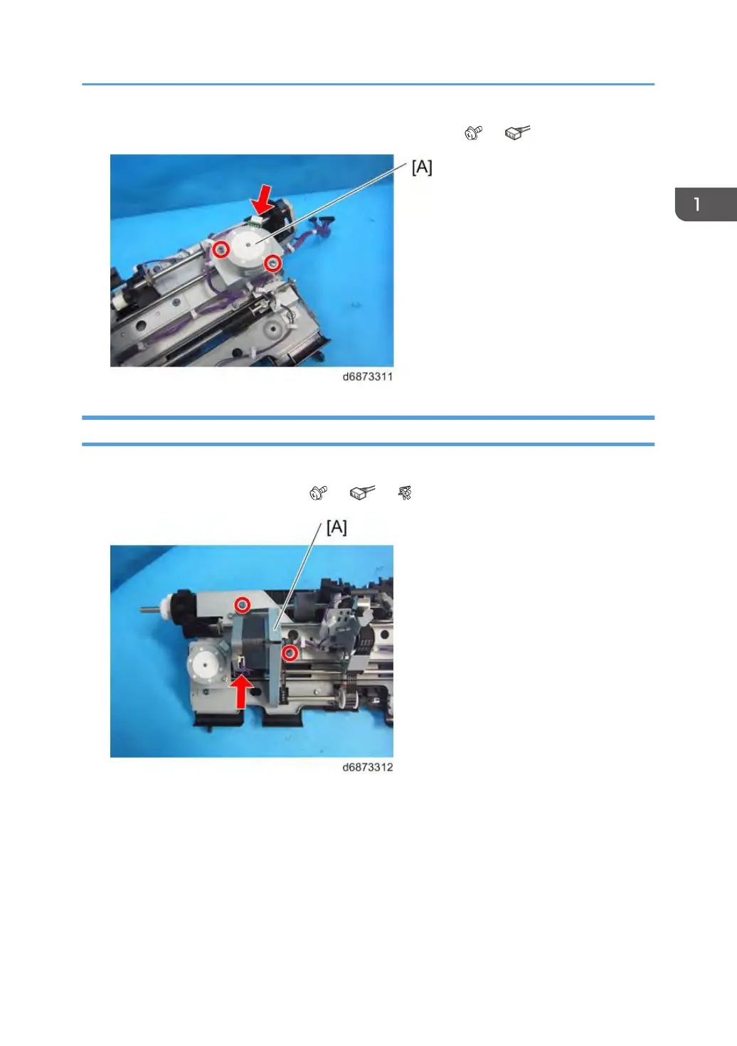 2. Release claw motor bracket [A] ( ×2, ×1, ×2)