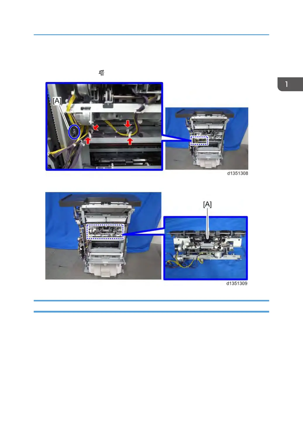 12. Pull out the harnesses disconnected in step 13 to the right side of the finisher through the