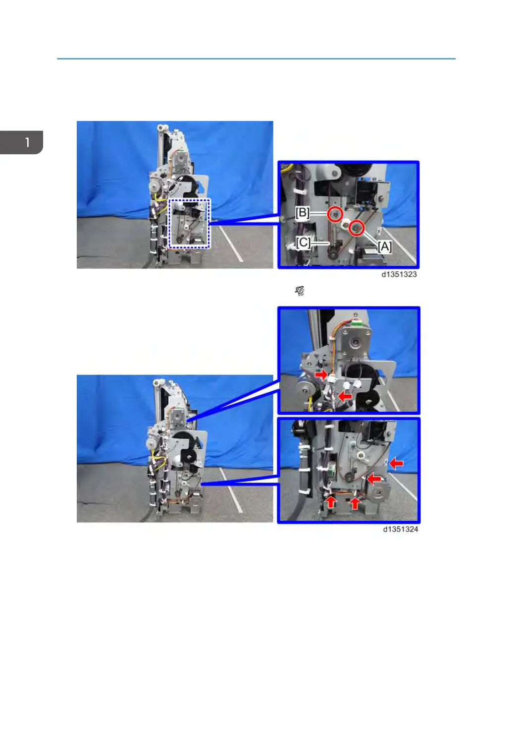 4. Loosen the screw [B] of the belt holding bracket, and then loosen the press folding motor