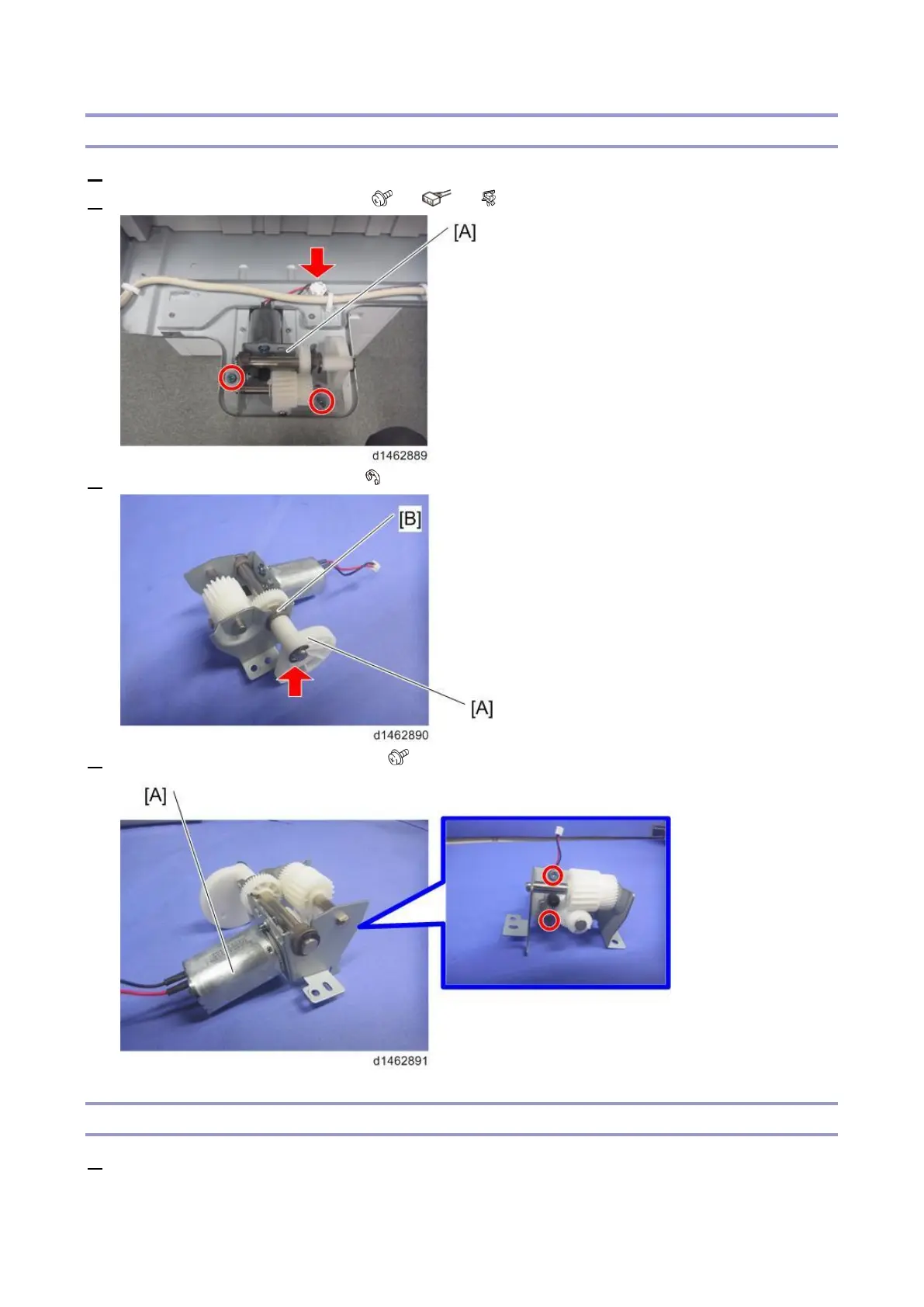 2. Remove the tray lift motor unit [A] ( ×2, ×1, ×1).