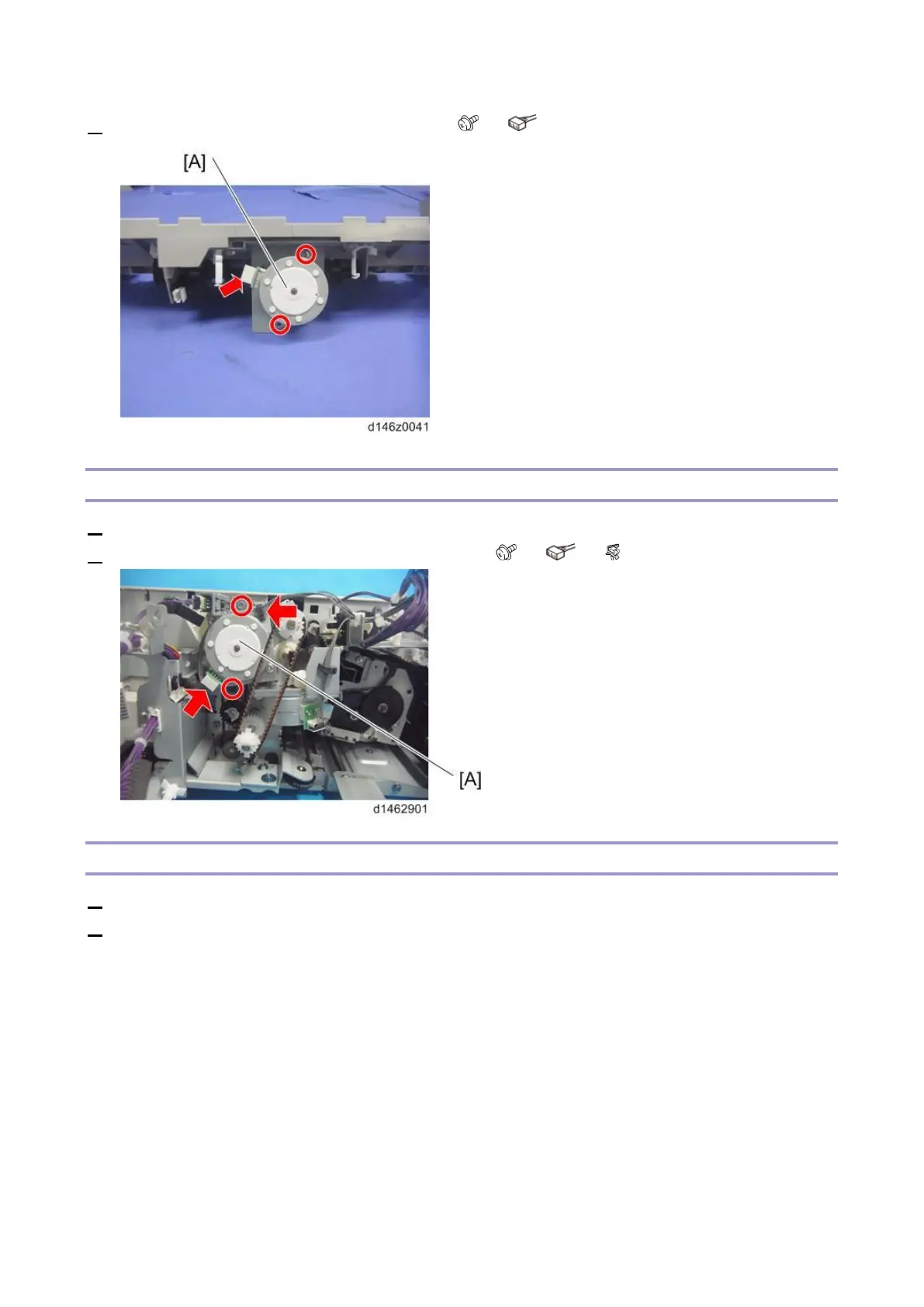 2. Remove the paper exit guide plate motor (M12) [A] ( ×2, ×1, ×1).