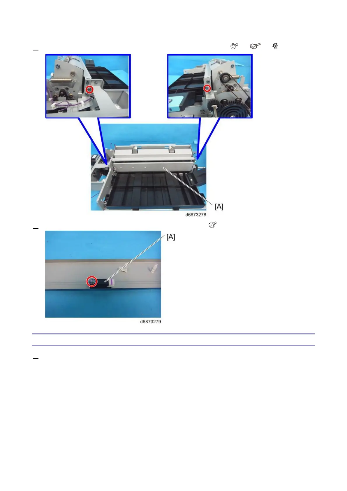 2. Remove the Edge Stopper Paper Surface Sensor (S27) bracket [A] ( ×2, ×1, ×4).