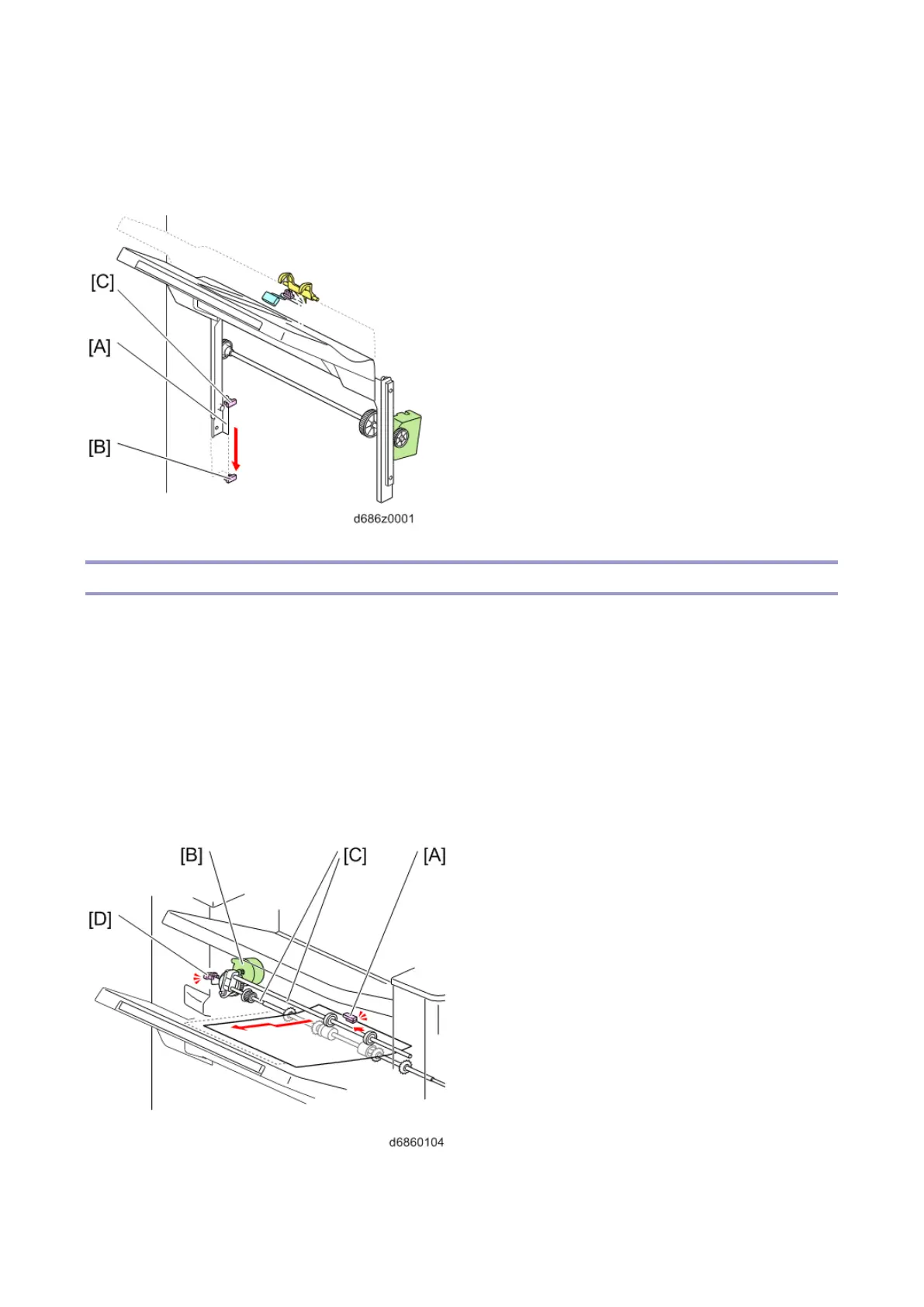 The Shift HP Sensor (S17) [D] detects the home position of the shift roller.