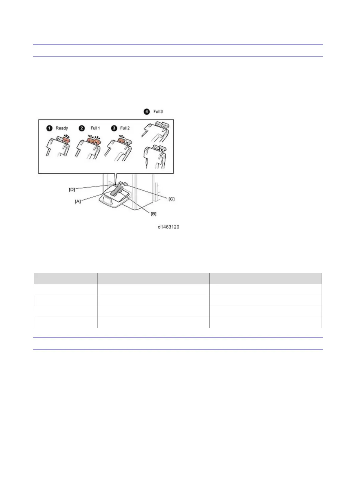 Sensor 1 (S4)[C] and the Booklet Tray Full Sensor 2 (S2) [D] detect booklet tray "Full".