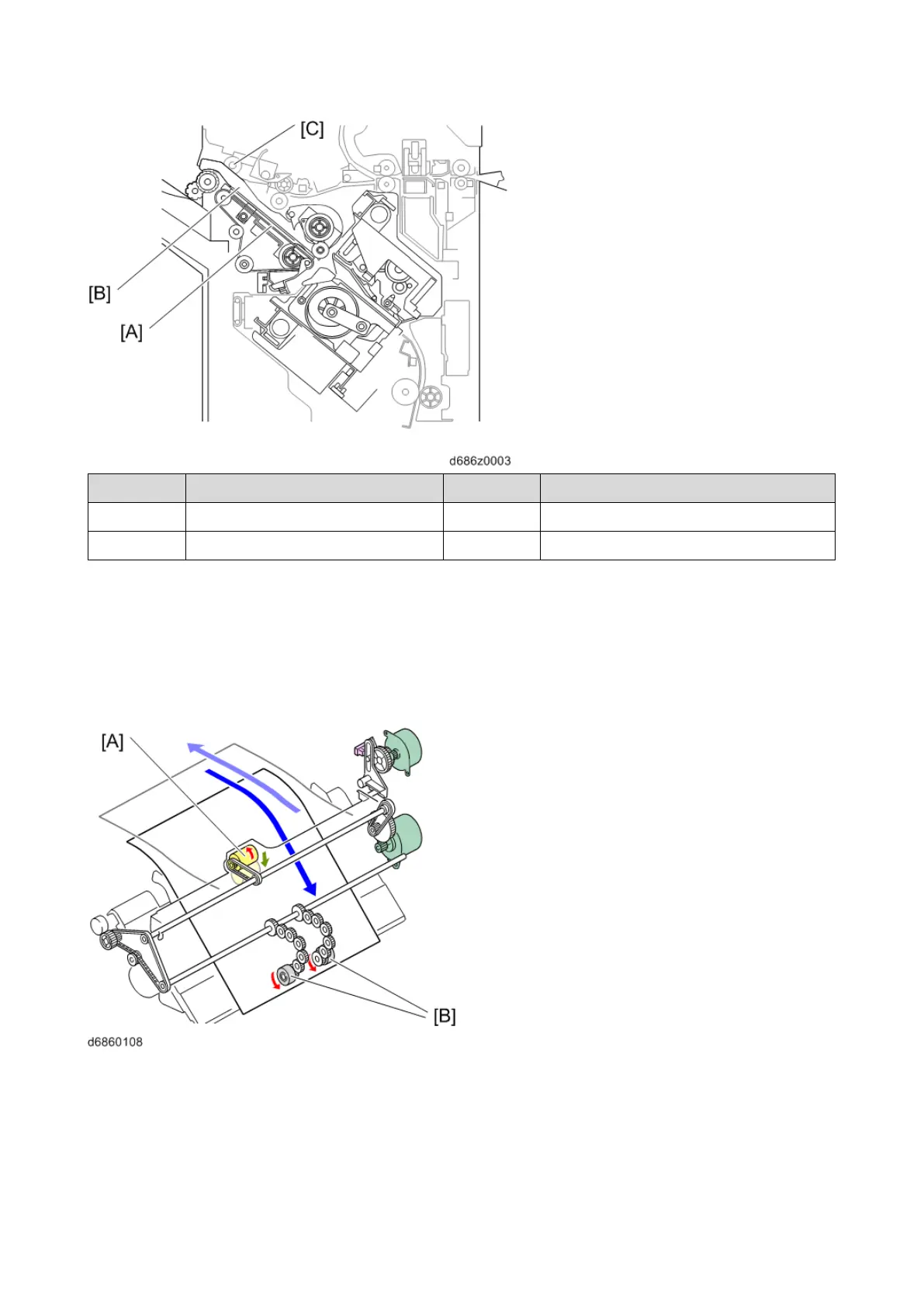 The paper is transferred to the reverse roller [B] by the approach roller [A], driven by the Positioning