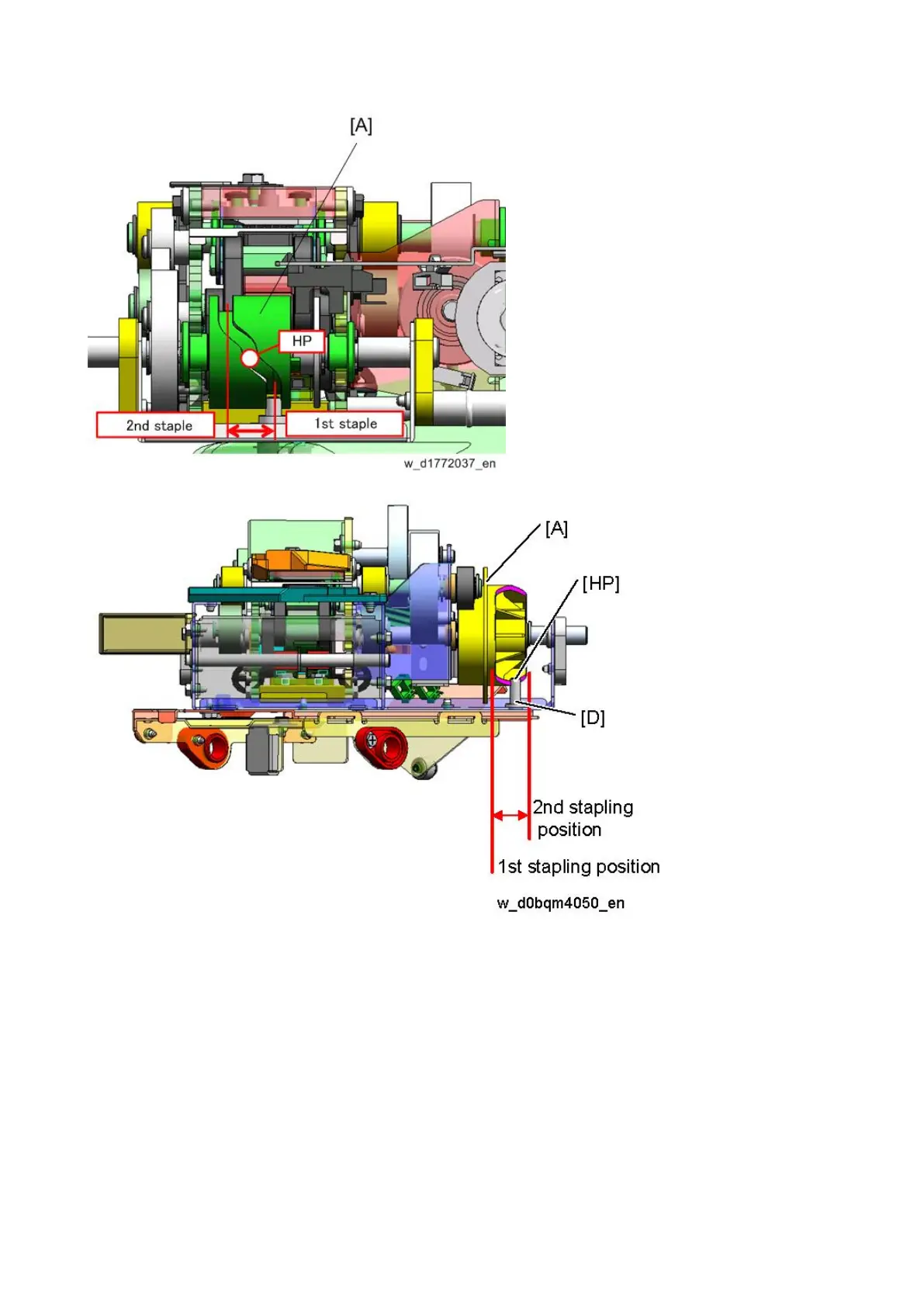 The moving and stapling is done by the Stapleless Stapler Drive Motor (DCM9) [B] and the home