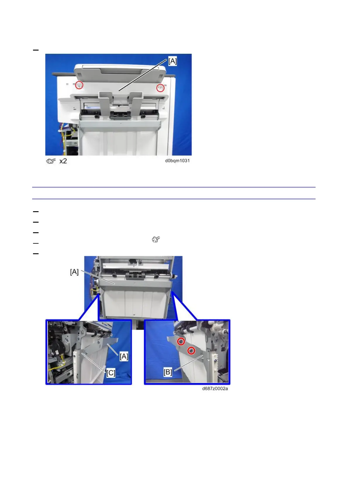 4. Remove the shift tray front bracket [B] ( ×2).