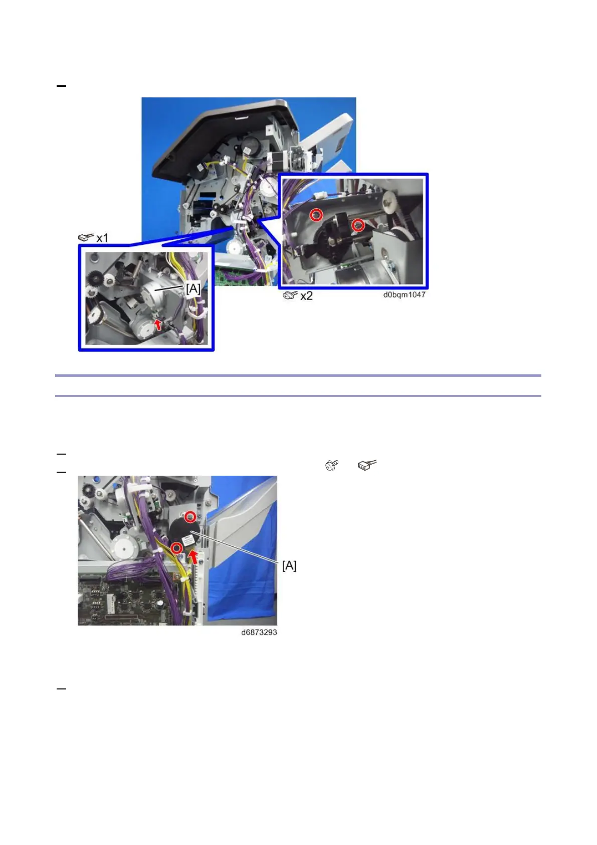 2. Remove the Paper Exit Transport Motor (DCM3) [A] ( ×2, ×1).